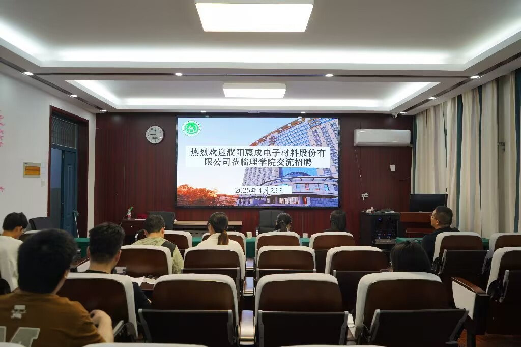 携手濮阳惠成电子材料股份有限公司于文化路校区18号楼301会议室召开招聘宣讲会。院党委书记王照兰、院团委书记邓瑛和研究生辅导员王美丽出席会议,学院2025届毕业生参加此次宣讲会。