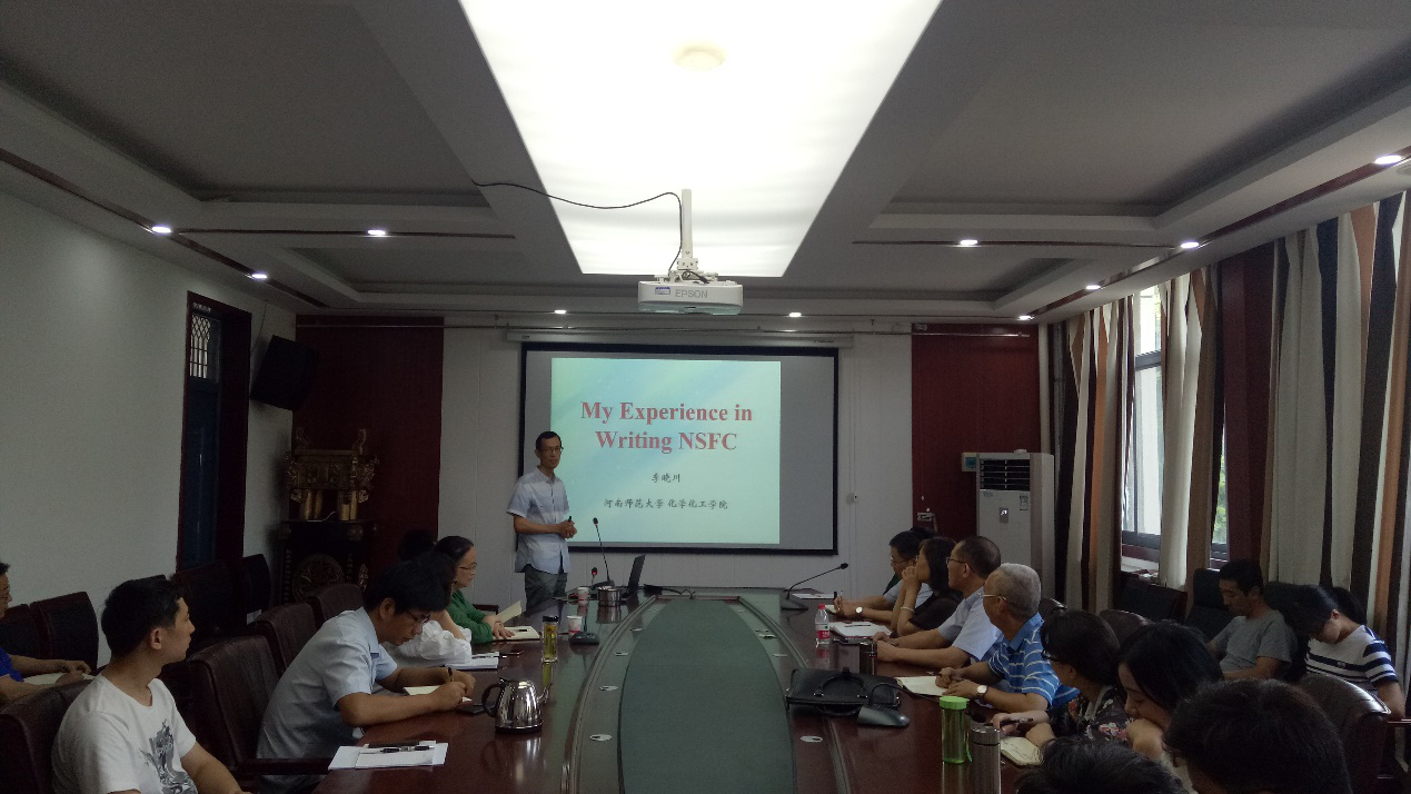 李老师根据自己申报国家自然科学基金(青年项目和面上项目)的丰富经验,分别从指导思想、选题立项、NSFC、其它注意事项和平时积累五个方面向大家讲解了成功申请到国家自然基金需要做的一系列工作和努力。李老师两个多小时的讲解结束后,郑先福院长和徐翠莲副院长进行了总结。郑院长对李老师的报告给予了高度评价,认为报告系统、生动、接地气,对化学学科以后的发展和国家自然科学基金的申报会起到很大的促进作用,更认为如果没有听李老师的这个报告一定会后悔。随后老师们向李老师请教了如何解决自己的科研和申报国家自然科学基金存在的问题,李老师进行了一一解答。
