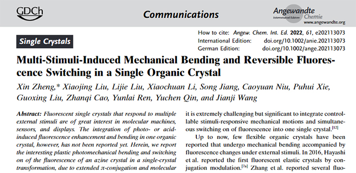 研究成果以“Multi-Stimuli-Induced Mechanical Bending and Reversible Fluorescence Switching in a Single Organic Crystal”为题,发表在国际化学著名期刊《Angewandte Chemie International Edition》上。里番