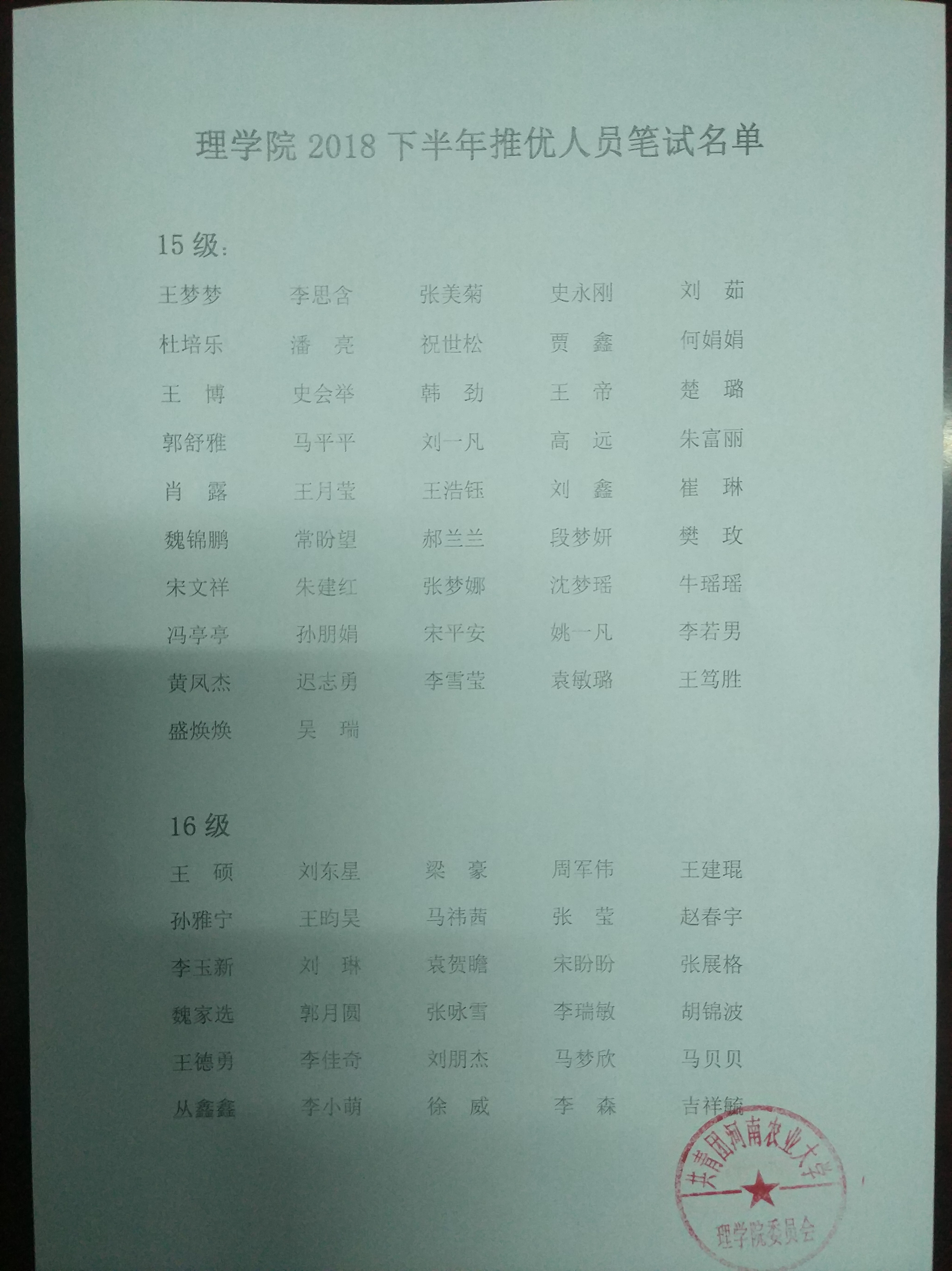 里番 2018下半年推优人员笔试名单