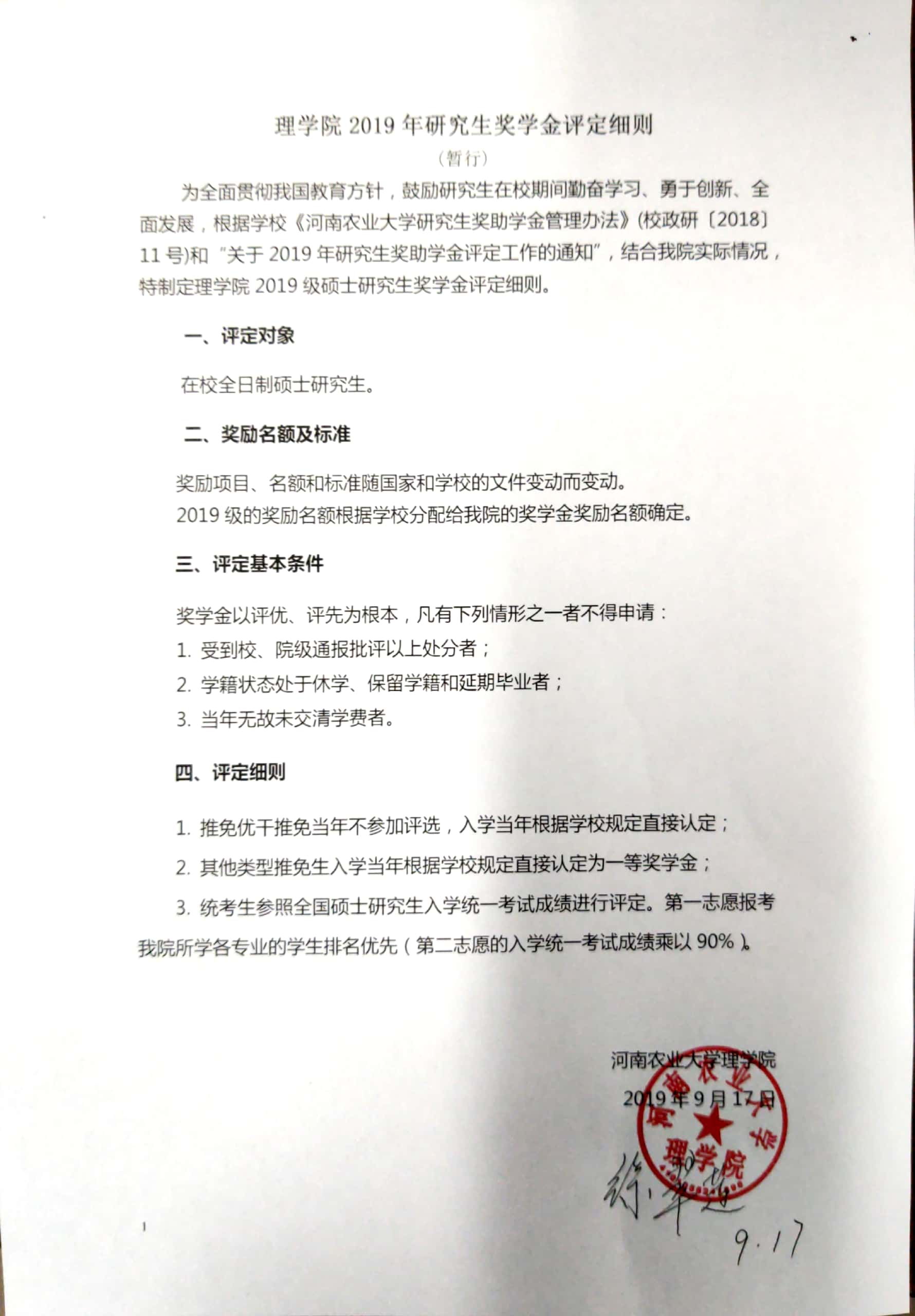 里番 2019年研究生奖学金评定细则