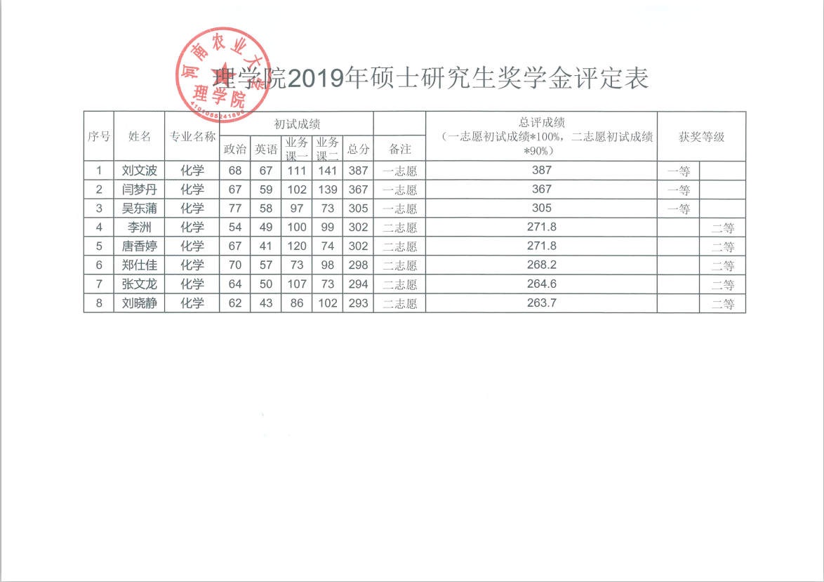 关于里番 2019级硕士研究生学业奖学金名单的公示