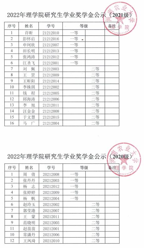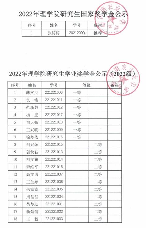 关于里番 2022年研究生奖学金评审结果的公示