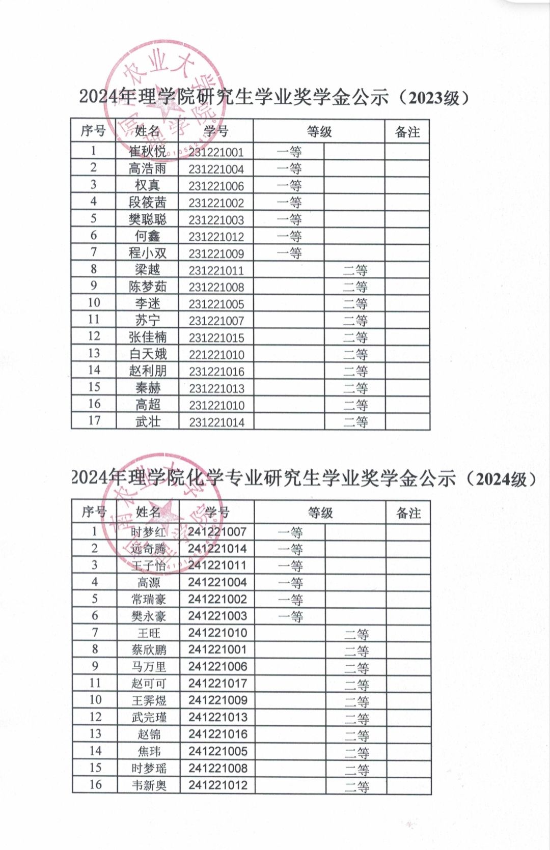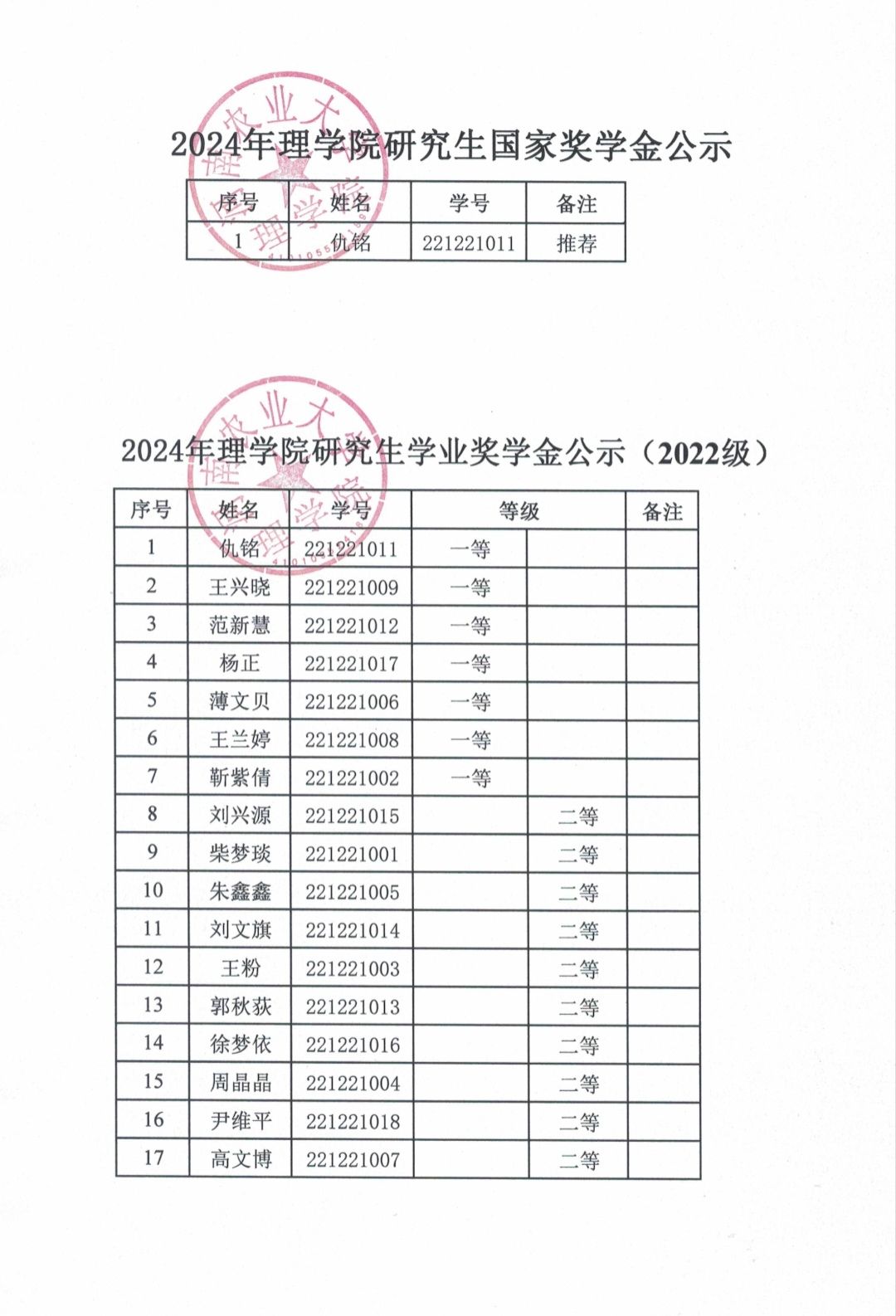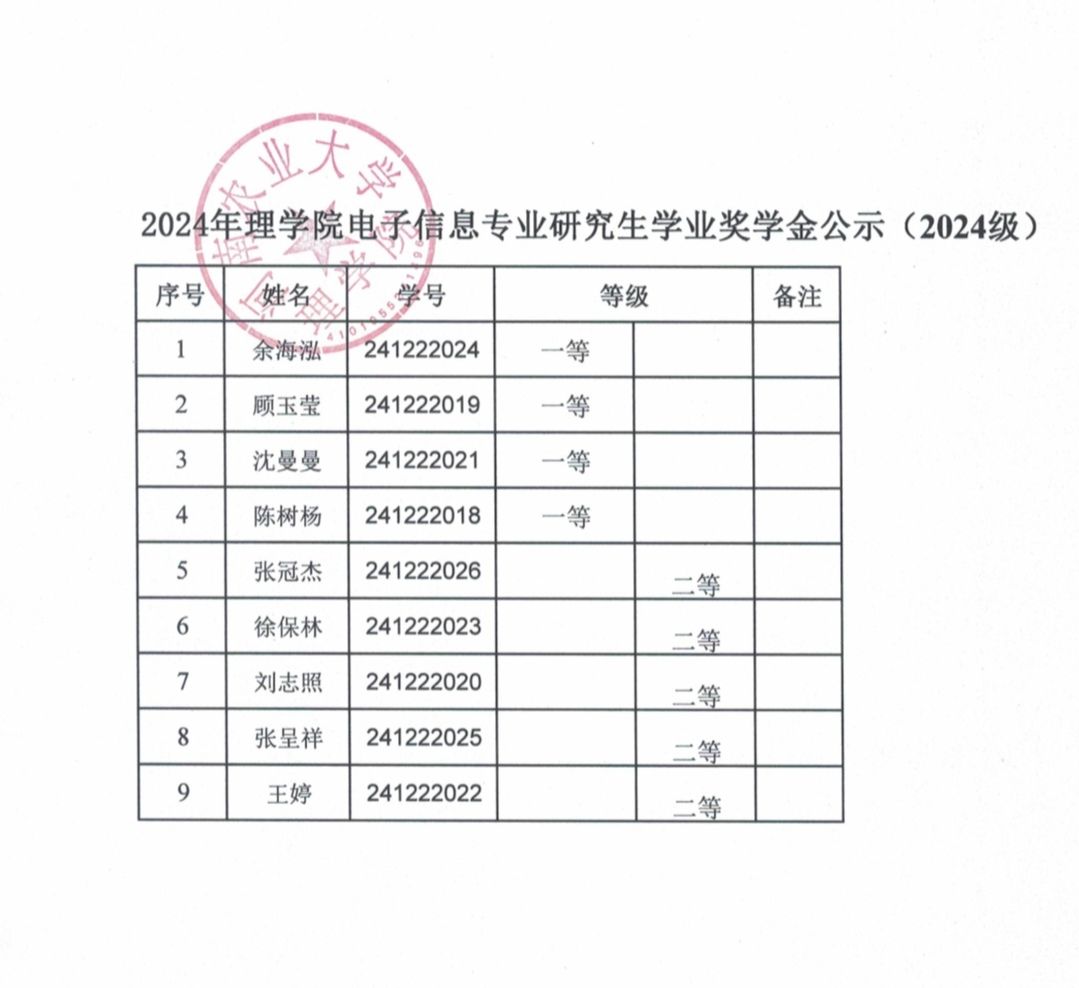 根据《里番 关于做好2024年研究生国家奖助学金评审发放工作的通知》和《里番 研究生奖助学金管理办法》(农大研〔2024〕3号)文件精神,按照《里番 2024年研究生奖学金评定细则》的规定,现将研究生奖学金评审结果予以公示。