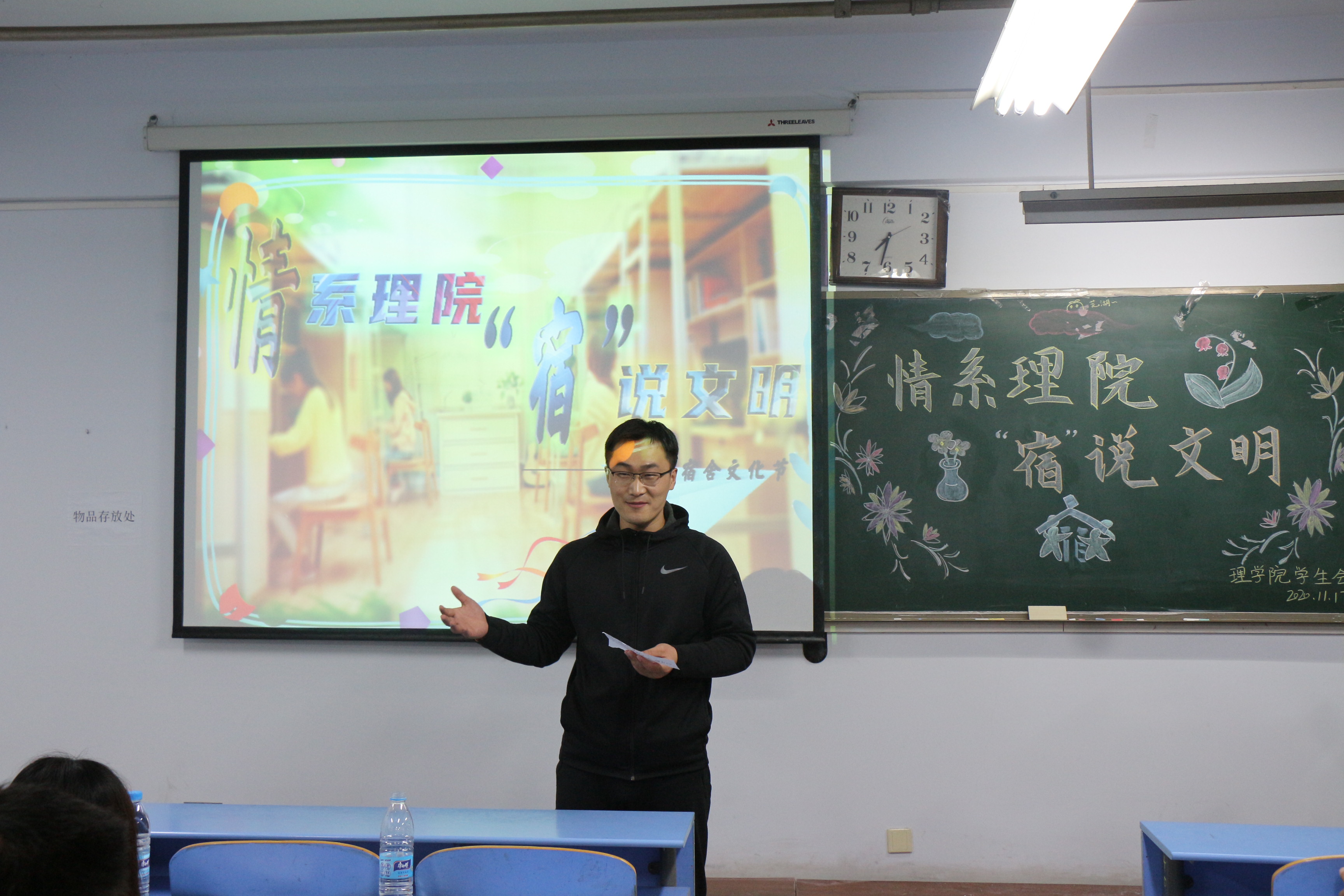 本次宿舍文化节活动分为宿舍装扮、线上评选和线下决赛三部分。经过学院官方微信线上投票,共有九个寝室闯进决赛。参赛宿舍代表,以PPT的方式向现场观众介绍自己精心装扮的“小窝”,通过一张张优美的照片、精彩的演讲,向观众展现了不同主题和风格且温馨的小窝,让观众看到了宿舍成员之间的情谊和对美好生活的向往之情。比赛中间穿插演唱、相声等表演,将现场氛围推向高潮。经过激烈的角逐,来自桃李园2号楼的723寝室荣获此次宿舍文化节冠军。徐向楠为获奖寝室颁奖并合影留念。