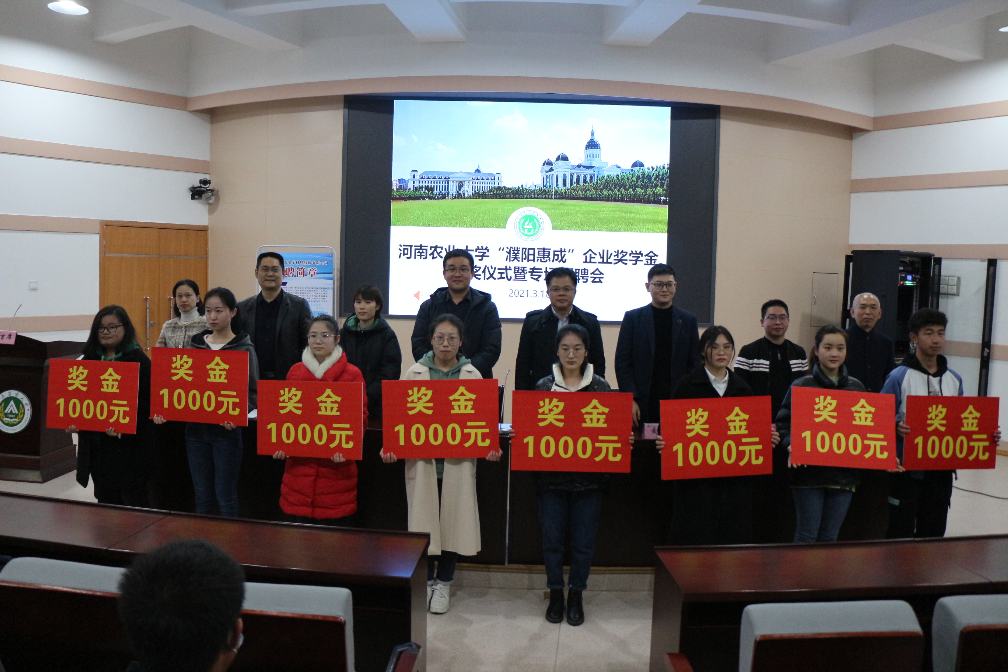 侯金超对濮阳惠成企业长期以来的关心和支持表示感谢,并指出濮阳惠成企业设立奖学金是对农大学子的关爱,希望广大毕业生认清就业形势,合理调整就业期望值,努力学习、早日就业、积极工作,早日成长为一名德才兼备的有用之才。