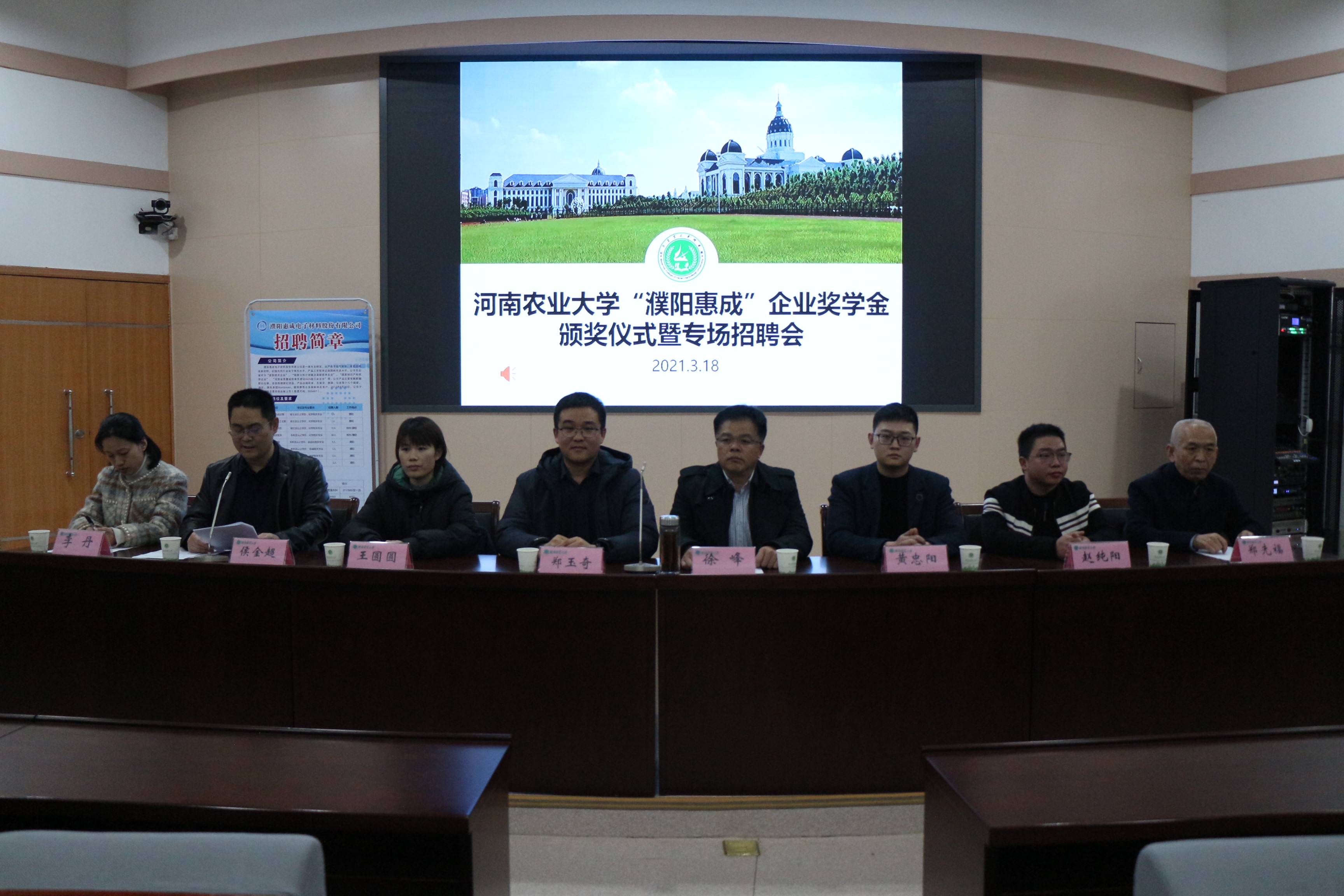 3月18日,“濮阳惠成”企业奖学金颁奖仪式暨专场招聘会在我校文化路校区三百人报告厅举行。濮阳惠成电子材料股份有限公司副总经理郑玉奇,校党委学工部部长、学生处处长徐峰,里番