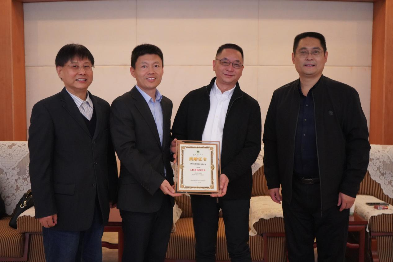 党委书记侯金超、校友办副主任闫东、院电科系教授潘建斌、上海皓元医药股份有限公司就职校友何泽源参加了此次捐赠仪式。
