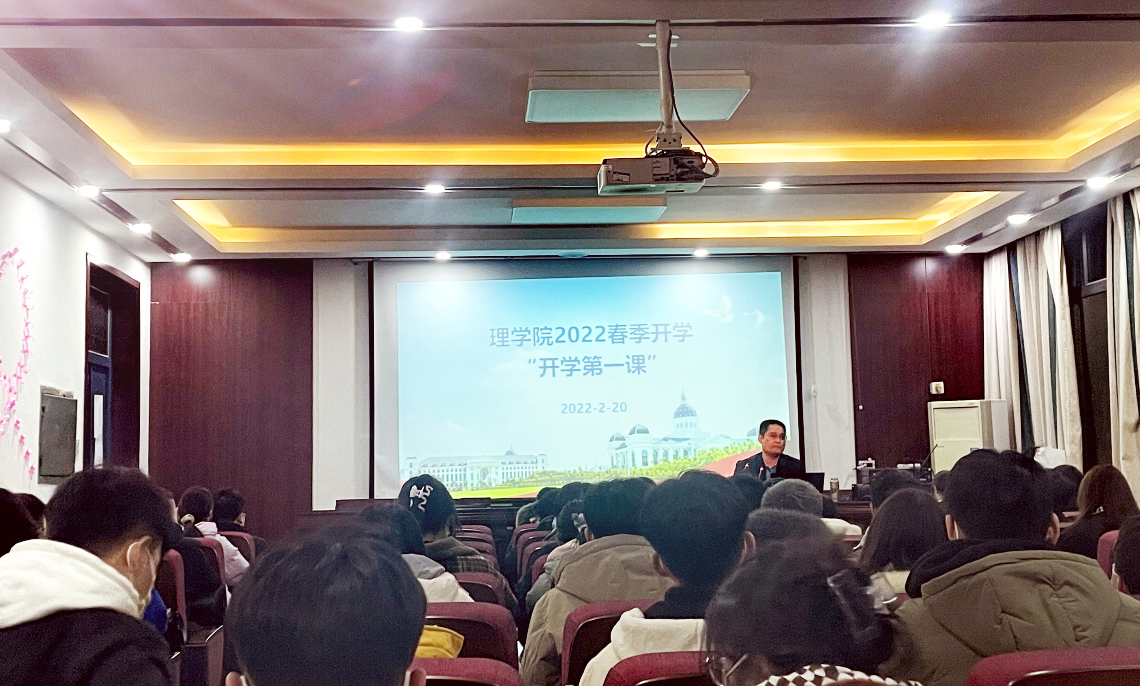 于文化路校区开展2022年春季开学“开学第一课”,院党委书记侯金超作十九届六中全会精神宣讲报告。院团委专兼职辅导员,全体班长、支书及主要学生干部参加会议。会议由院党委副书记李丹主持。