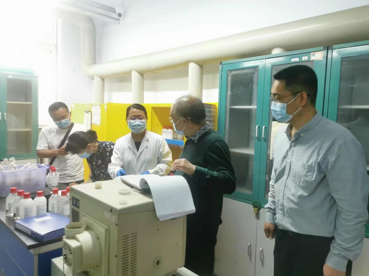 在18号楼化学实验室,游舸检查了实验室消杀工作情况,现场查看了实验室危险化学品的领取、使用等管理流程,详细了解了实验室疫情防控各项措施。随后,游舸出席了里番