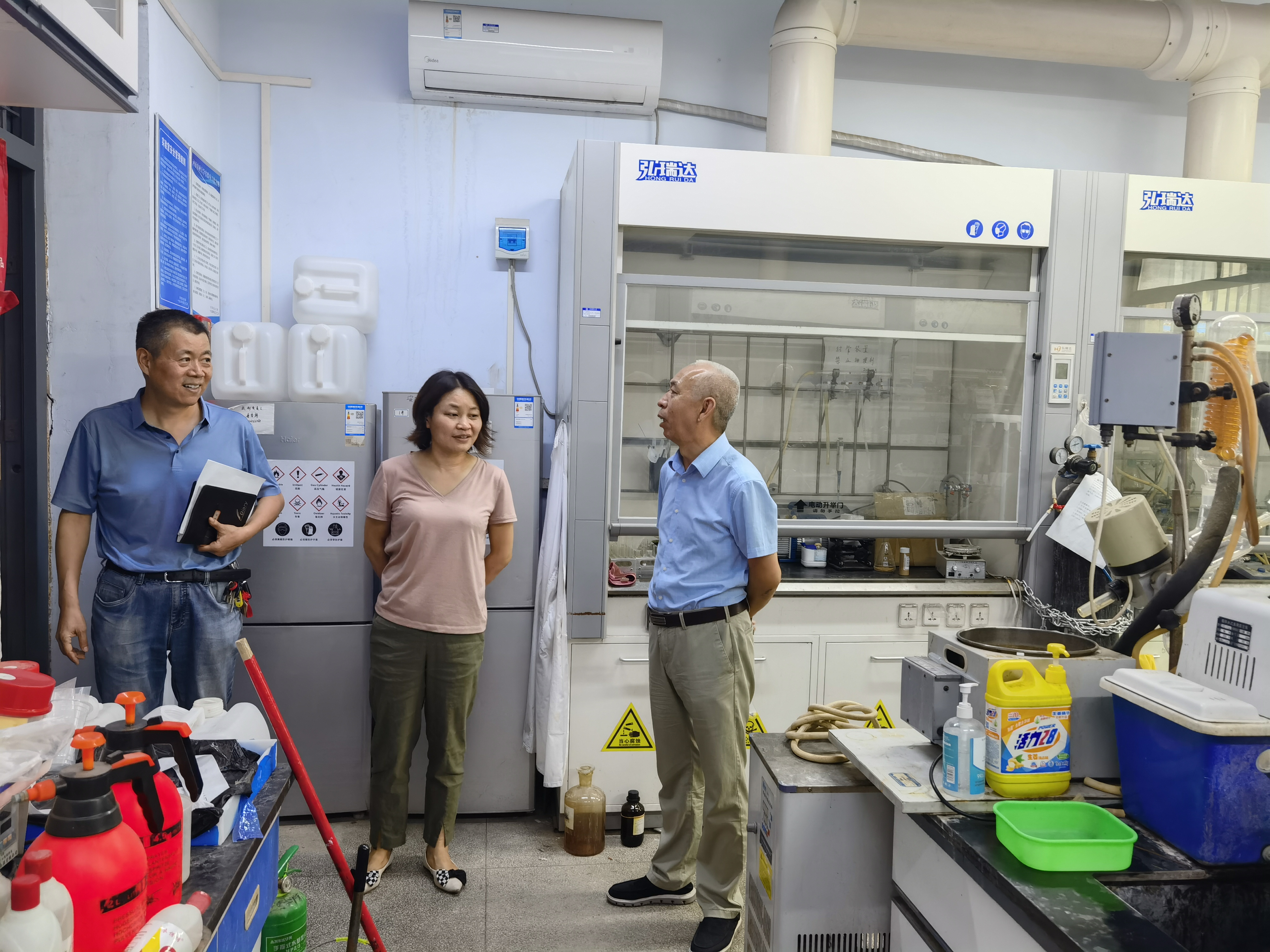 在文化路校区18号楼实验室,检查组重点查看了实验室使用及管理规章制度、特种设备使用及管理、实验室危险源管理及应急处置装置、用电用水用气安全、设施设备安全情况,并对以前检查中发现的相关问题落实情况一一进行复查。在教师们办公室,检查组对即将开始的线上授课情况进行了解,仔细询问并及时解决大家在线上教学过程中遇到的问题。