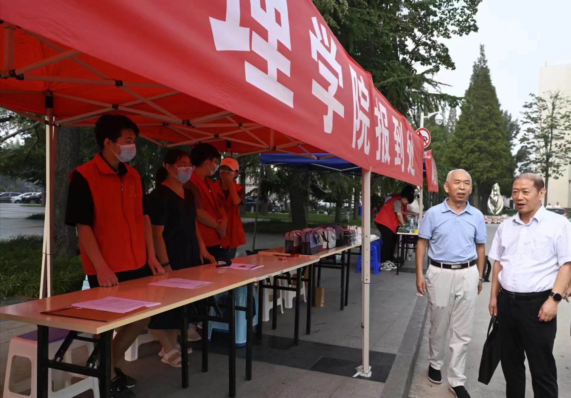 9月3日,学院党委书记王照兰、院长郑先福及全院领导班子带领老师们和学生志愿者,早早在学院大本营准备就绪,共同参与迎接返校工作。志愿者们引导研究生顺利报到后,帮助每一位研究生将行李送到寝室。迎接返校现场周到、全面、细致的服务,让刚返校的研究生感受到了家的温暖,也让因疫情防控不能入校的家长们倍感放心。