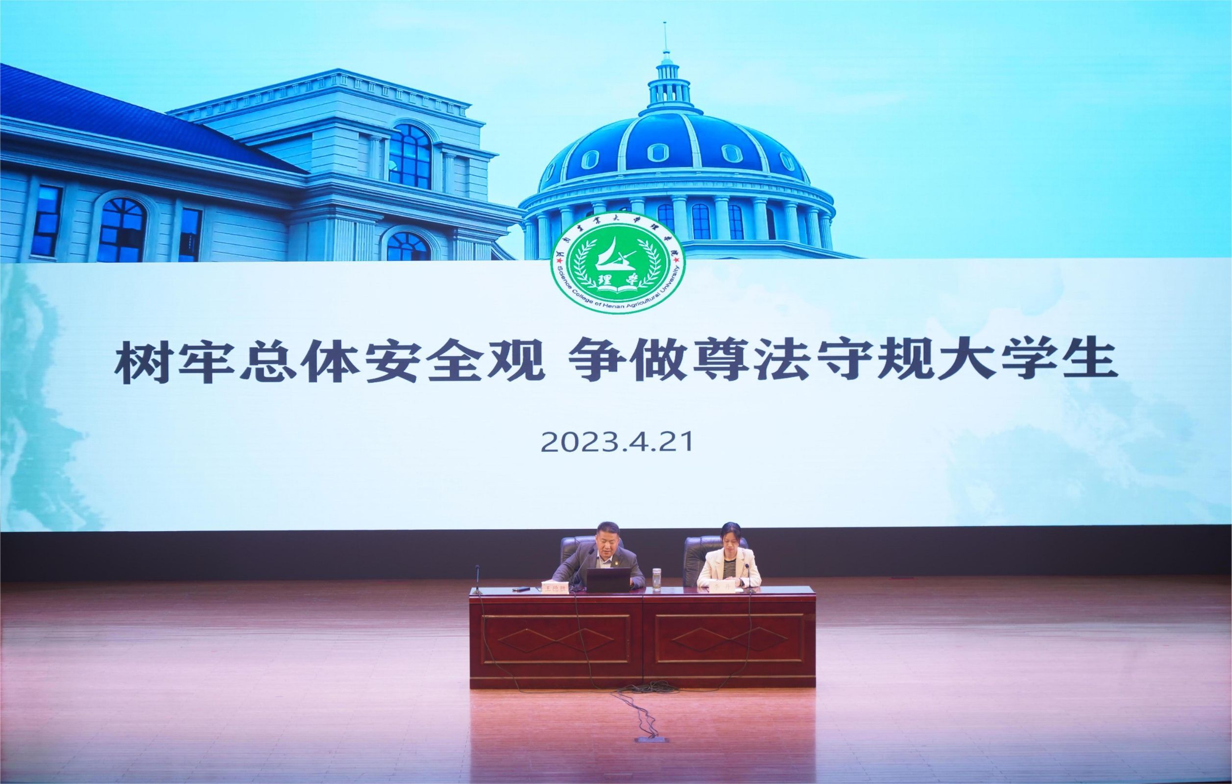 会上,王德胜以“树牢总体安全观,争做遵法守规大学生”为主题,围绕国家安全、消防安全、财产安全、交通安全四个方面展开报告。他结合警示案例,具体细致地分析了各类校园突发事件的成因,切实详细地提出了面对危情时应该采取的行动,提醒学生们要学习并掌握校园安全防范基础知识,时刻树立防范意识,加强自我保护和自我管理,使安全教育入脑入心,共筑和谐平安校园。