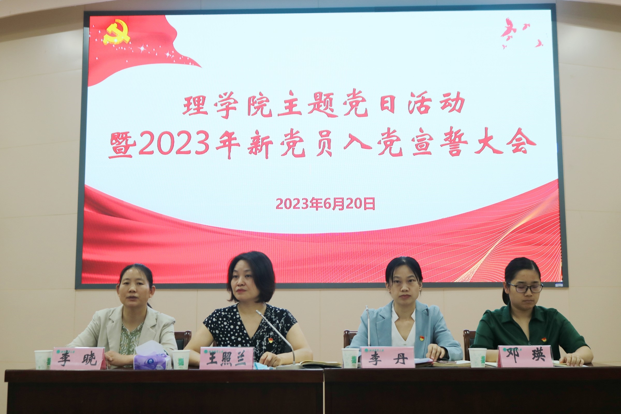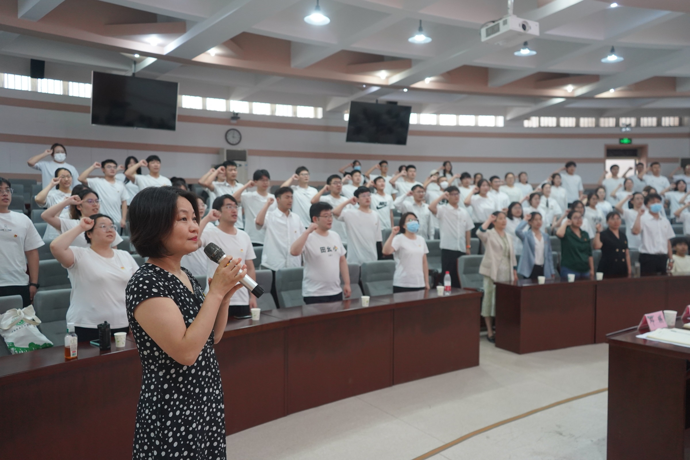 主题党日活动暨2023年新党员入党宣誓大会在文化路校区三百人报告厅举行。院党委书记王照兰、党委副书记李丹、党政办公室主任李晓、团委书记邓瑛、组织员孙晴以及全体辅导员出席会议,学院教师党员代表、2023年新发展党员、全体学生党员参加会议。大会由李丹主持。