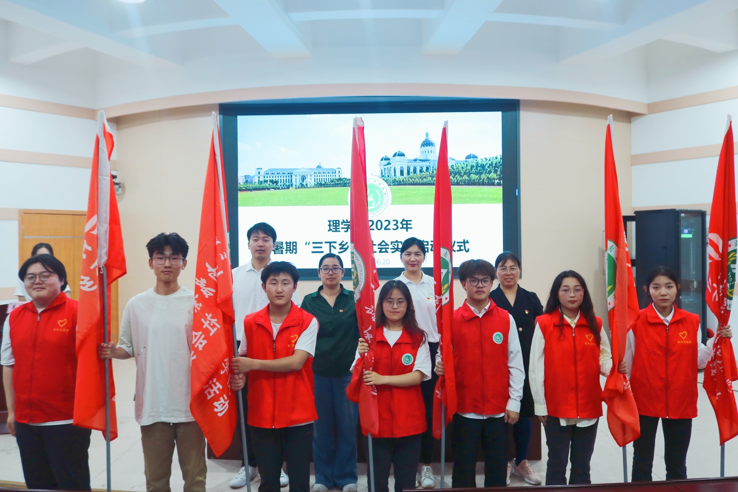 会议伊始,孙晴宣读《关于开展2023年里番 暑期“三下乡”社会实践活动的预通知》,王美丽、王卫楠分别宣读校级重点团队及院级重点团队名单,团委老师为校级实践团队代表授旗。
