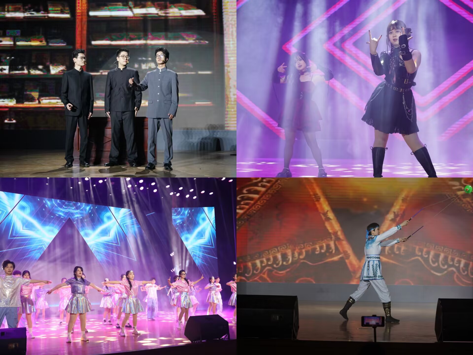 晚会分为“龘龘耀新年”“朤朤迎未来”两个篇章。开场舞《奔跑吧青春》用热烈旋律拉开活动序幕,瞬间点燃现场观众的热情。街舞《冬日女孩》以其独特的魅力,展现出了当代大学生青春的活力与朝气;歌伴舞《兰亭序》将古典文化与现代表演完美结合,带领观众穿越时空,感受历史的厚重;舞台剧《共和国之恋》以深情演绎红色经典,带领观众回顾那段激情燃烧的岁月;杂技《龙鼓竹韵》以其精湛的技艺,赢得了观众的惊叹与掌声,将全场气氛推向高潮;舞蹈《莲韵》以其柔美的姿态,展现了东方女性的优雅与婉约;小品《反诈银行》以其幽默的情节,让观众在欢笑中收获智慧;歌曲联唱《林听·理音》为观众带来一场音乐的狂欢;舞蹈《旖旎》以其柔美的舞姿,展现了未来的美好憧憬;小品《天网恢恢》以其深刻的寓意,引发师生的反思与警醒;乐器民谣《河流》为我们带来一场听觉盛宴;街舞《开心跳龙门》以其欢快的节奏,带领学生跟随音乐一起舞动;歌曲《如愿》用其深情的演唱,唤起大家内心的共鸣;歌伴舞《一起向未来》为晚会画上圆满的句号,寓意着新的一年,我们携手共进,共创未来。现场气氛热烈非凡,观众纷纷挥动手中的荧光棒为表演者加油鼓劲。