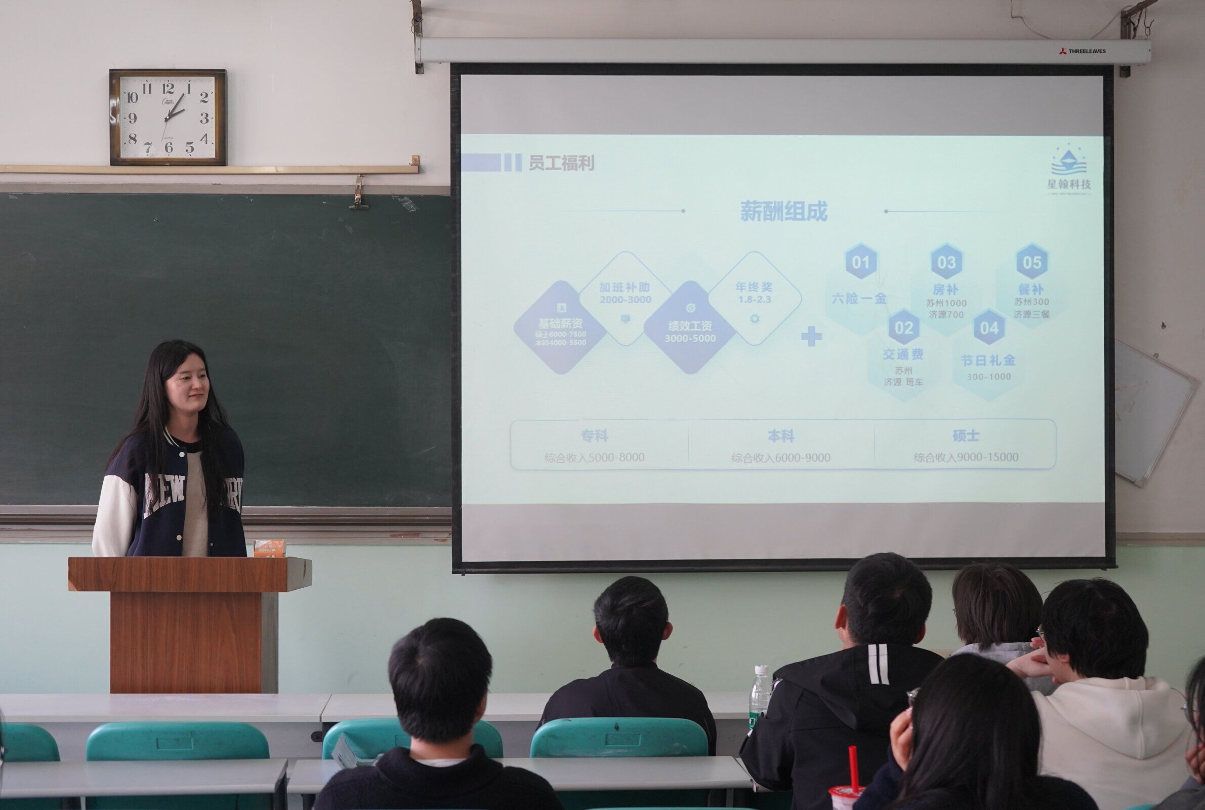会上,苏州星翰新材料科技有限公司负责人介绍了公司的基本情况、文化理念、发展历程和未来发展方向。之后,从工作环境、业务方向、员工福利及应聘要求等方面进行了全景式的展示,使同学们对这家公司有了全方位的了解。在互动环节,同学们针对升职路线和工资结构等关心的问题提出疑问,负责人一一进行解答。会后,企业招聘团队在对有浓厚兴趣的毕业生进行了现场笔试,为他们提供了近距离接触这家公司、展示自我的机会。