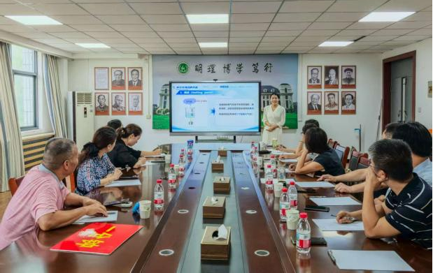 会上,武晓霞以大学化学中“稀溶液沸点升高”、“溶液的渗透压”、“稀溶液凝固点降低”及“原电池”四个章节为例进行了教学展示。