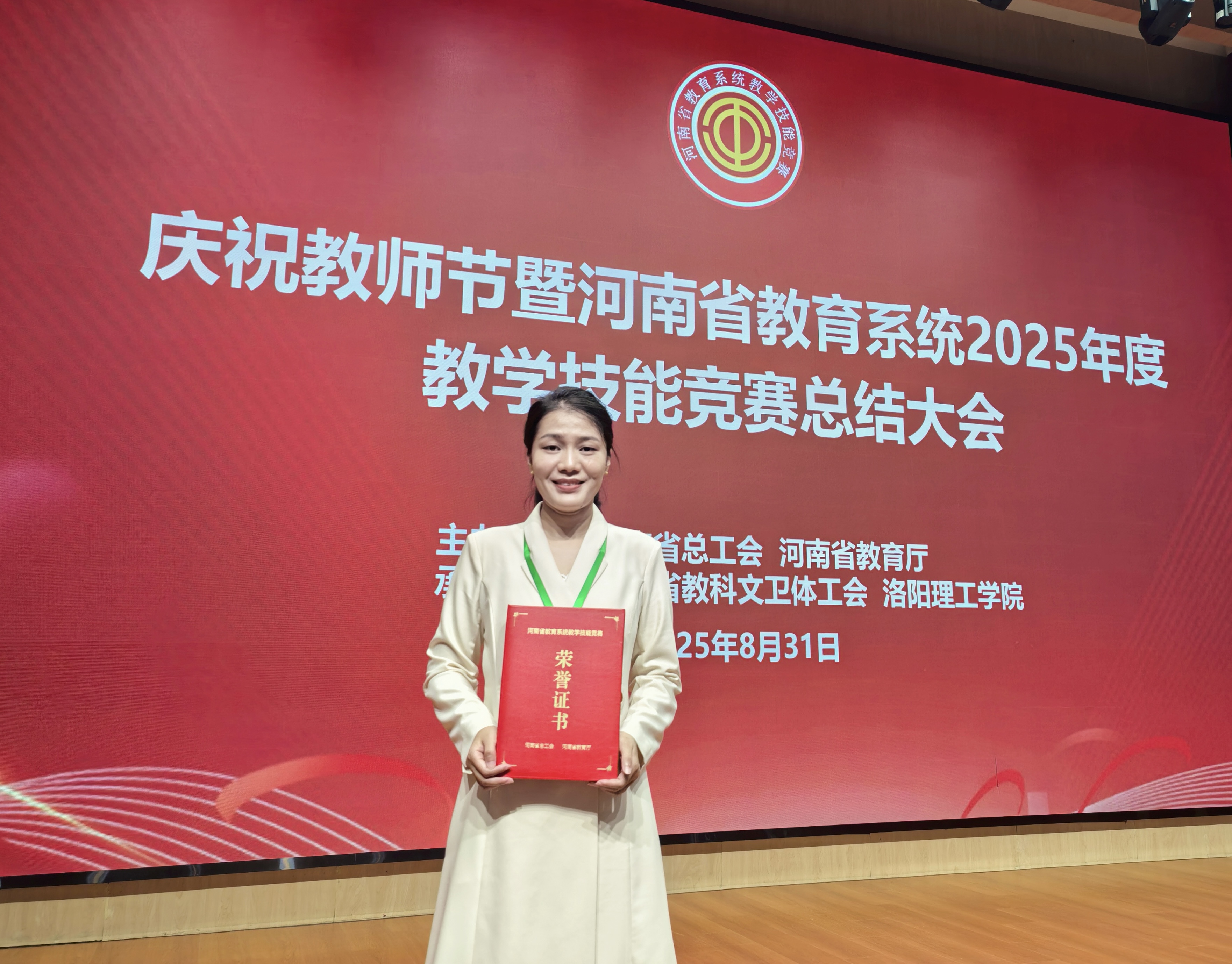 8月25日至31日,由省总工会、省教育厅主办,省教科文卫体工会和洛阳理工学院承办的河南省教育系统2025年度教学技能竞赛现场决赛在洛阳顺利举行。本次比赛面向本科组6个科目,共有来自全省的121名优秀选手参加决赛。