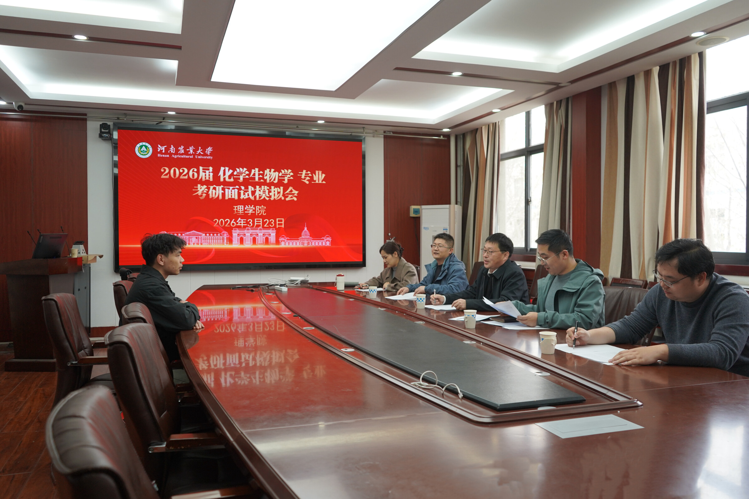 于文化路校区18号楼319会议室举行2026届化学生物学专业考研面试模拟会。本次活动严格按照研究生复试标准进行,为备考学子提供了一场高度仿真的实战演练。