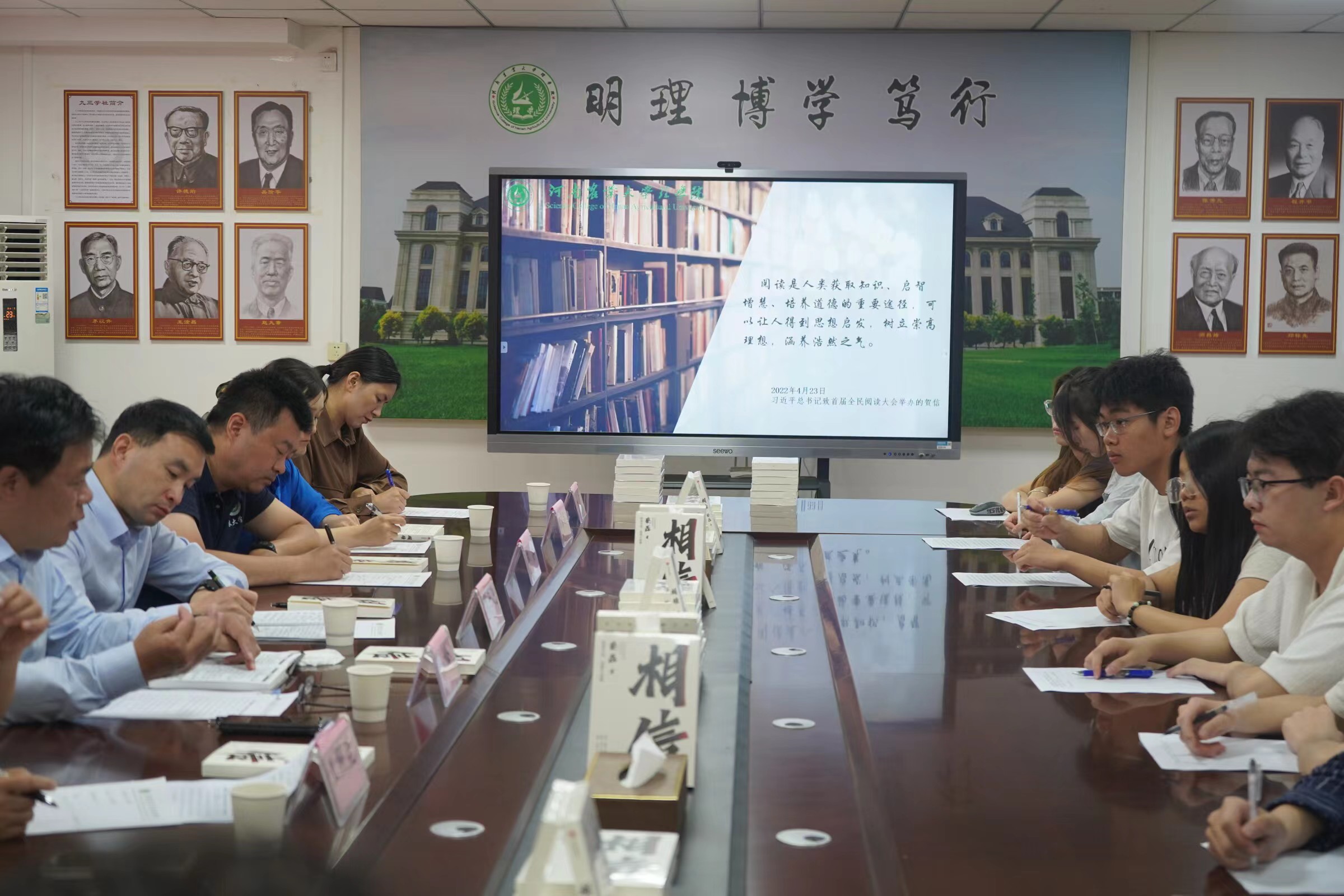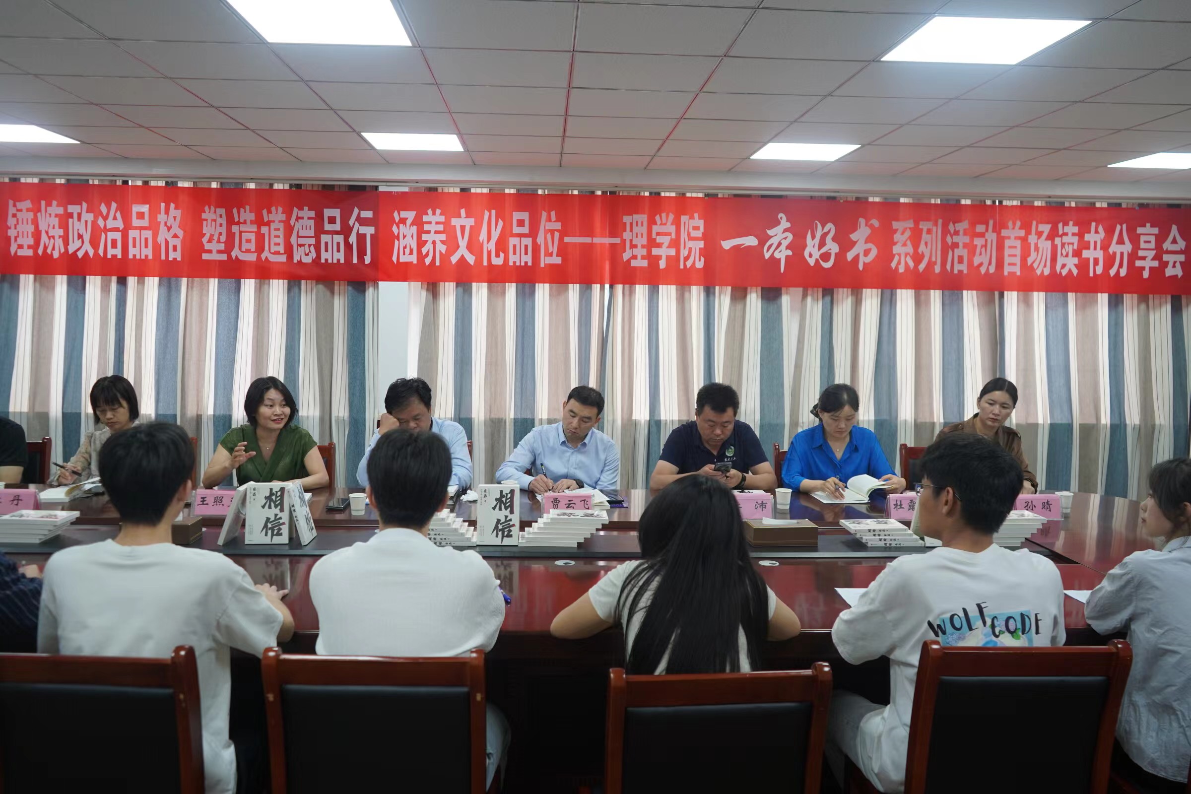 于文化路校区20号楼415会议室举办“一本好书”系列活动首场读书分享会。校党委学生工作部部长、武装部部长、学生处处长徐峰,校团委书记贾云飞,校党委学工部副部长李沛,学工部杜露阳老师莅临本次活动,里番