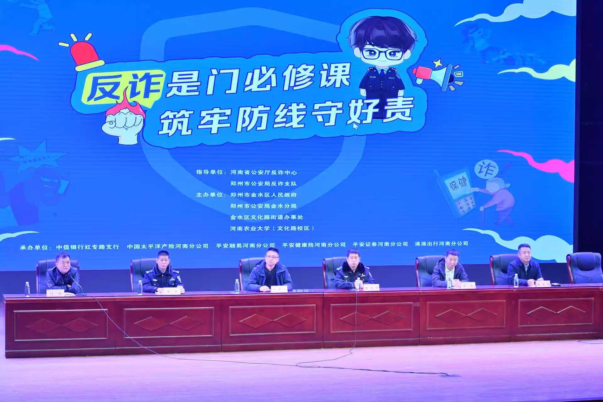 与保卫处共同承办的反诈专题讲座在文化路校区千人大礼堂举行。河南省公安厅反诈中心、郑州市公安局反诈支队全程指导,金水区打击治理电信网络诈骗协调机制有关负责人、金水反诈大队民警代表出席活动。