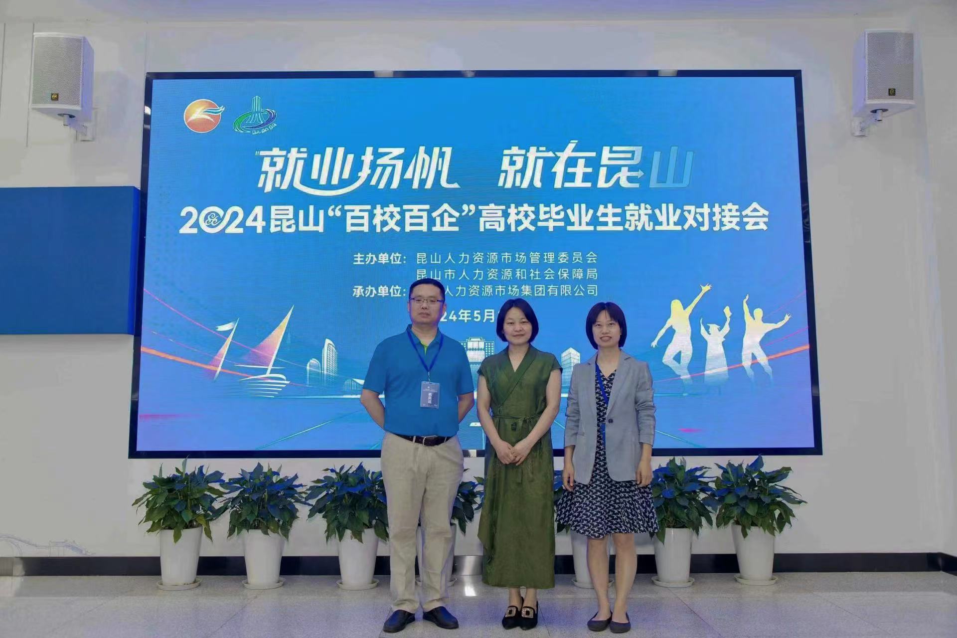 党委书记王照兰、党委副书记李丹以及科研秘书贾树恒等人赴昆山人力资源市场参加以“就业扬帆,就在昆山”为主题的2024“百校百企”高校毕业生就业对接会。
